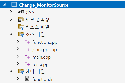 jsoncpp.cpp는 c++에서 json 파싱을 위해 나중에 추가한 라이브러리 코드이고 test.cpp는 테스트 함수를 작성해둔 파일이라 생략했다.
