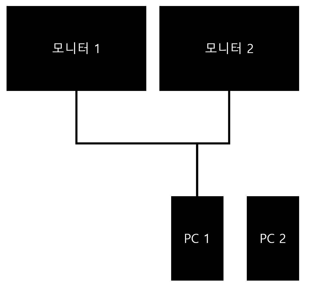 만약 PC와 모니터가 2대씩 있을 때 각 PC를 둘 다 듀얼 모니터로 사용하고 싶다면 어떻게 하는게 좋을까? 가장 쉽게 문제를 해결하려면 매번 사용하는 PC의 HDMI 케이블을 바꿔서 연결하면 된다!