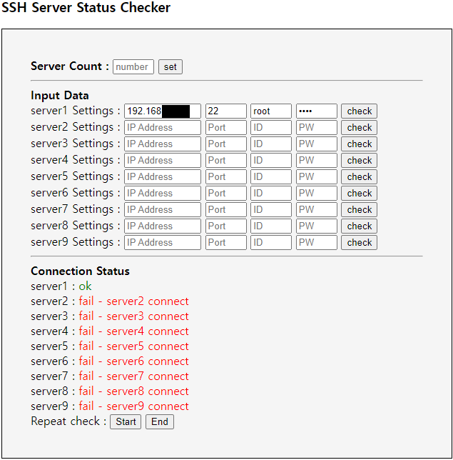 웹 페이지에서 여러 대의 SSH 서버가 연결이 가능한지 여부를 UI로 확인하고 싶어서 만들었다.