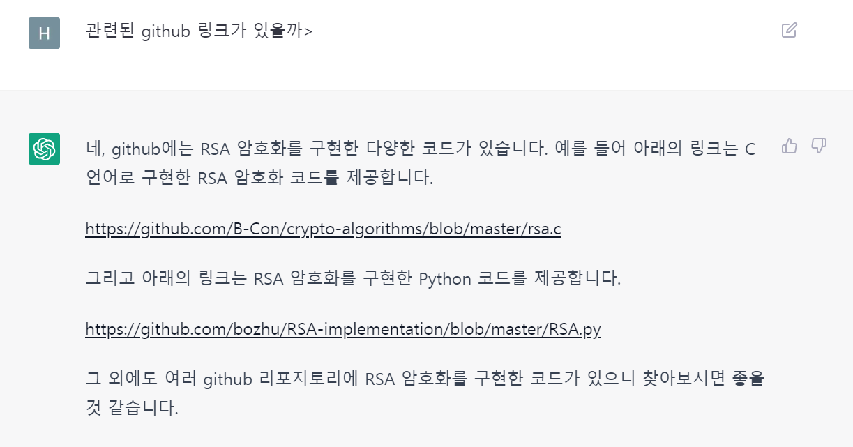 심지어 이런 위에서 말한 내용을 기억하고 새로운 내용을 추가한 답변을 하거나, 코드와 관련된 github 링크를 추천해주기도 한다.