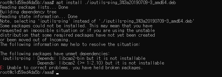 aaa라는 임시 폴더를 만들어 내부에 필요한 deb 들을 설치했다.